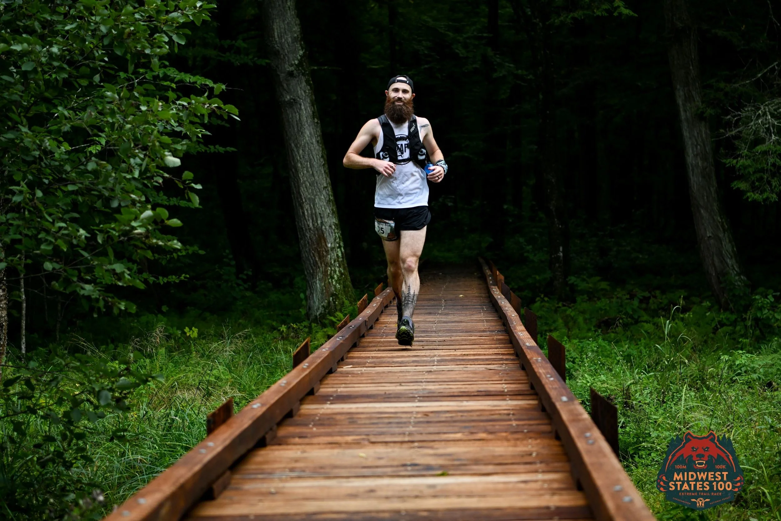 I woke up Saturday at 04:15 a.m., 30 minutes before my alarm. Emma was already up and moving about, and I knew I wouldn't fall back asleep, so I got out of bed. The first thing I noticed was how heavy my legs felt. It's almost as if my body was trying to convince me not to start the challenge I was about to attempt. I would be pushing for the full 100 mile distance of the inaugural Midwest States 100. I pushed the discomfort to the back of my mind as I began my pre-race routine. I downed a bottle of Stok coffee and started slipping on my gear. I slowly gathered things from the hotel room as I came out of the sleepy fog. We packed the few remaining items into the car and began our journey to the trailhead. I don't remember most of the ride there as I was slipping back and forth between wakefulness and a shallow sleep. We arrived early and I elected to sit in the car for a bit trying to grab a few minutes of extra rest.